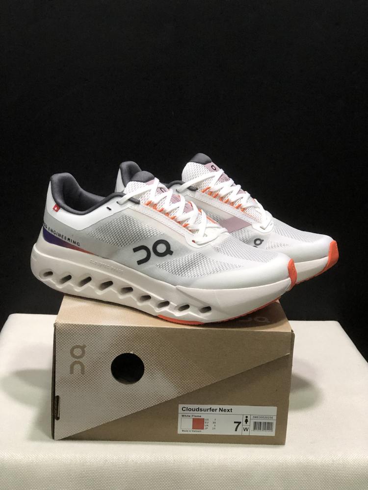 **On Cloudsurfer Next × الأبيض × لمسات نارّية – أداء يرفعك خطوة فوق!**