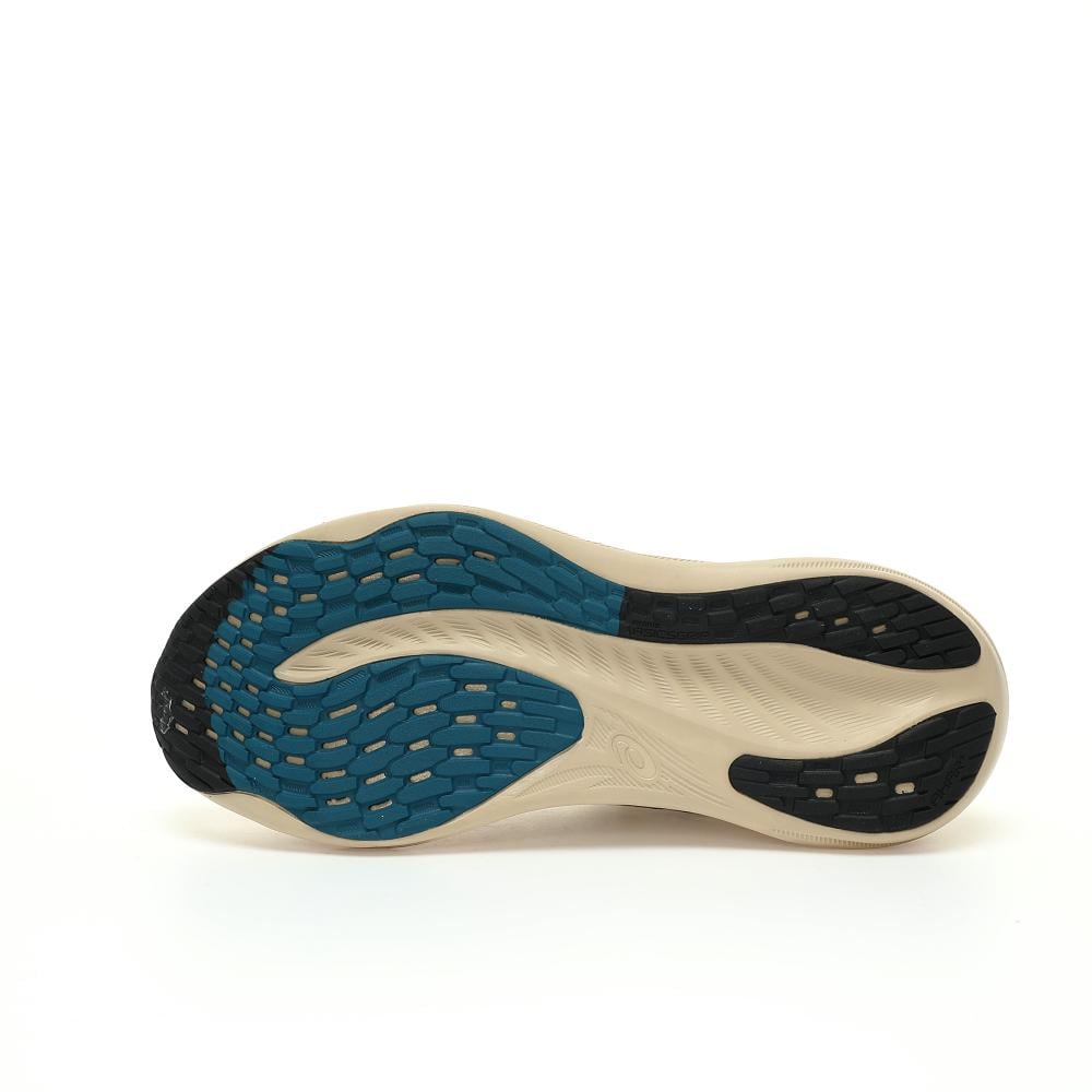 - النعل الأوسط (Midsole): النعل الأوسط شكله سميك ومركب بتصميم جديد ومبتكر، وهذا يدل على وجود أحدث تقنيات التوسيد. أكيد فيه نظام PureGEL™ الجديد من ASICS لامتصاص الصدمات بشكل فائق ونعومة لا مثيل لها، بالإضافة إلى مادة FF BLAST™ PLUS ECO اللي توفر خفة وزن واستجابة ممتازة وصديقة للبيئة. التصميم الجديد للنعل يركز على توفير توسيد فاخر وراحة استثنائية أثناء الركض لمسافات طويلة.