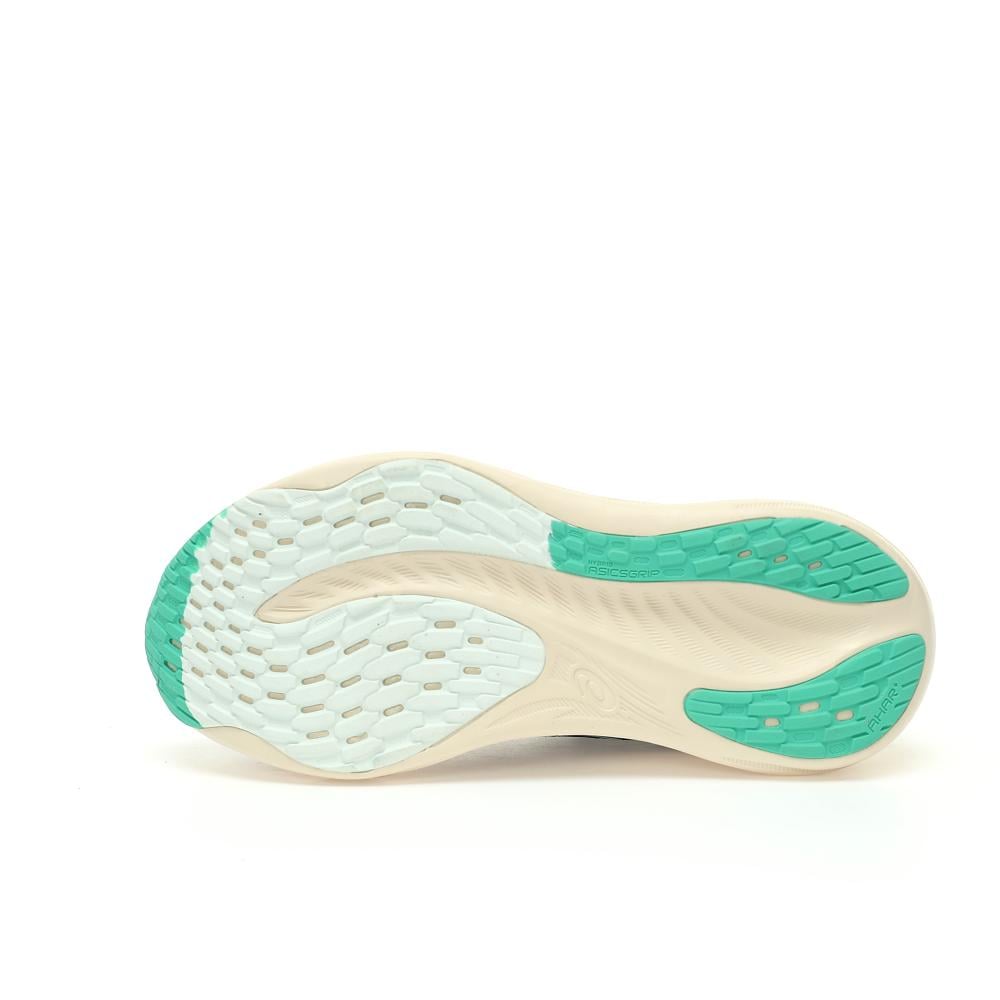 - النعل الأوسط (Midsole): النعل الأوسط شكله سميك ومركب بتصميم جديد ومبتكر، وهذا يدل على وجود أحدث تقنيات التوسيد. أكيد فيه نظام PureGEL™ الجديد من ASICS لامتصاص الصدمات بشكل فائق ونعومة لا مثيل لها، بالإضافة إلى مادة FF BLAST™ PLUS ECO اللي توفر خفة وزن واستجابة ممتازة وصديقة للبيئة. التصميم الجديد للنعل يركز على توفير توسيد فاخر وراحة استثنائية أثناء الركض لمسافات طويلة.