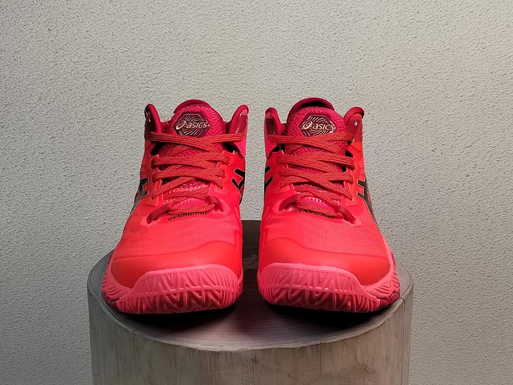 - تفاصيل إضافية: يتميز بتصميم مرتفع للكاحل مع بطانة إضافية لتوفير دعم ممتاز. نظام الأربطة يوفر إحكامًا آمنًا. شعار ASICS يظهر بوضوح على الجانب بلون أسود أو أحمر أغمق.